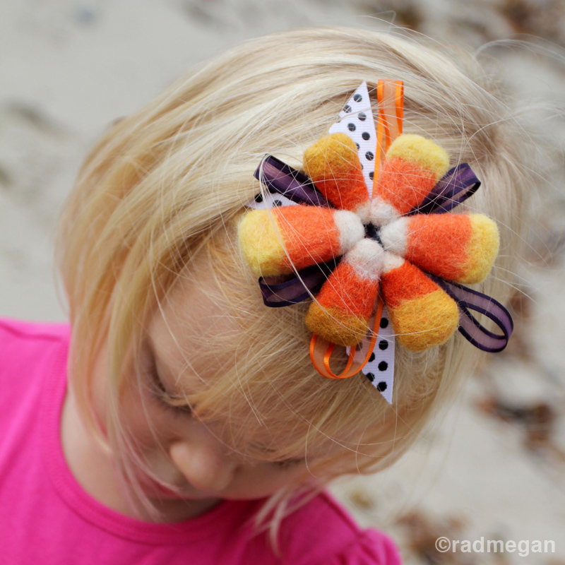 Yesterday, I got to see one of my favorite little girls. I don’t like to show up empty-handed when I go to meet friends, so I made her a needle-felted candy corn headband for Halloween.