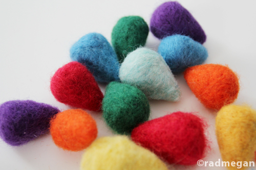 It’s only December 8th but I feel like Christmas is breathing down my neck. In an effort to ramp up my holiday home decor, I came up with this needle-felted string o’ Christmas lights. We don’t have a tree yet… But now we have adorable lights.