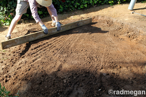 My parents had leveled out a space in the backyard, but we still had to carve away more soil, and pack it down again until it was level.